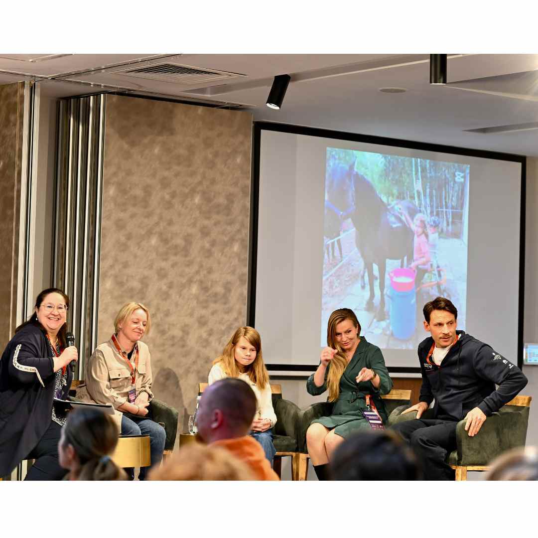Dyskusja: Ewa Metera-Zarzycka Polski Związek Jeździecki, Patrycja Gepner – Prezes Fundacji Rozwoju Parajeździectwa CENTAURI, Maksym Sakhno – Kierownik Wydziału Paralimpijskiego Federacji Jeździeckiej Ukrainy, Jana Tomiskova Czeska Federacja Jeździecka, Anna Brzoza Fundacja MCH "Zagroda Możliwości, Ewa Polańska–Wachel – Prezes Polskiego Towarzystwa Hipoterapeutycznego, Michał Stogniew